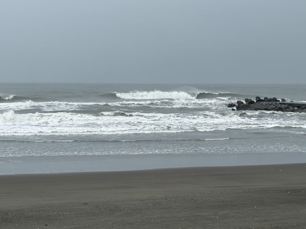 今朝のサイズは肩~頭前後です。 風はやや強めの南風。アウトではダラついたブレイク~ミドルで消えています。 ミドルからインサイドにかけては掘れていて早めのブレイクです。 アウトで選べば1~2アクション、ミドルはテイクオフ程度でしょう。