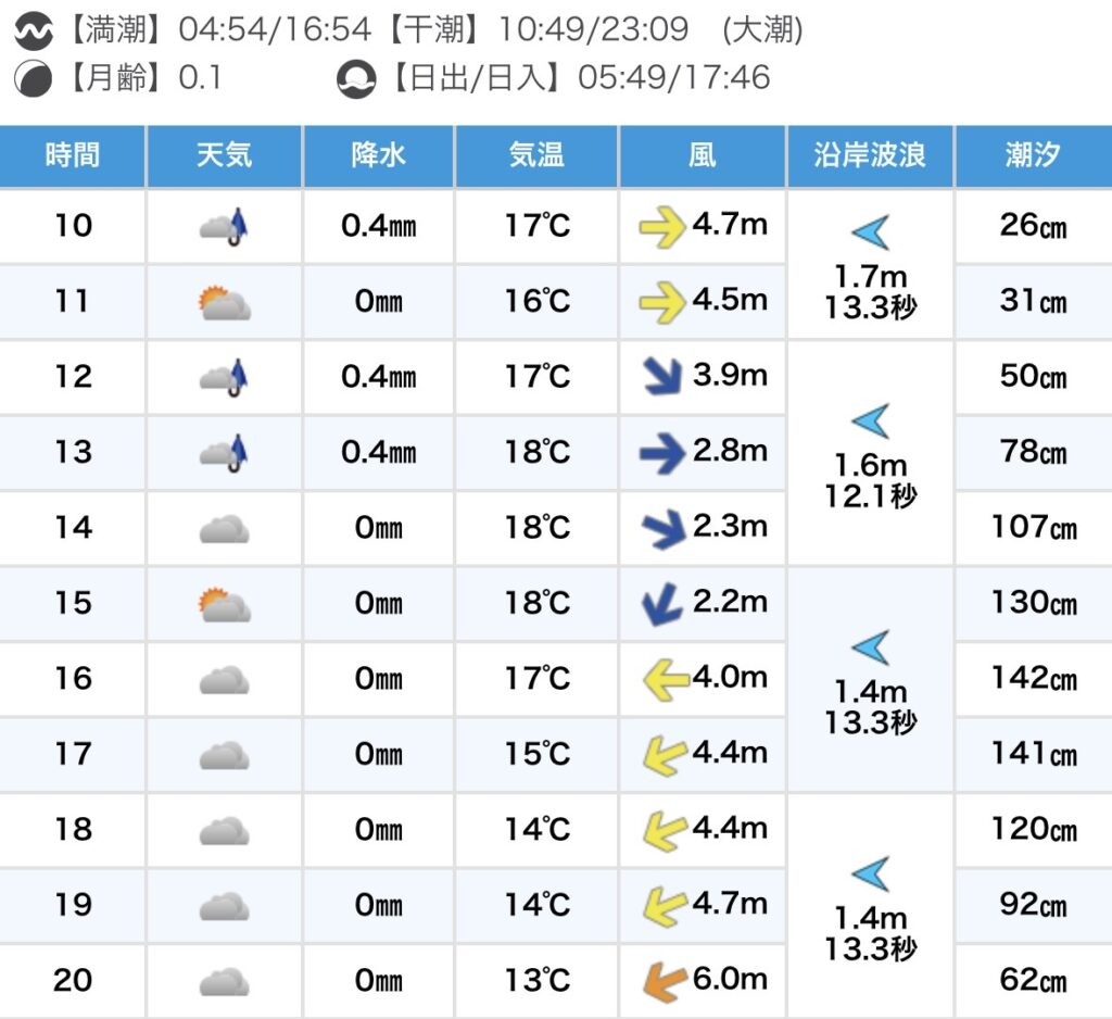日中にかけては風が北~東へとシフトしていく予報です。 1日を通して全体的にハード気味なコンディションが続きます。 風の合う南向きのポイントもチェックしましょう。