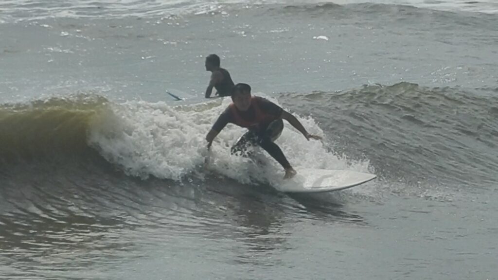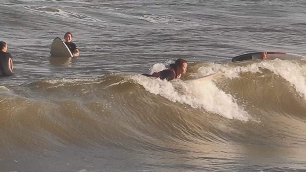 BEACHのサーフィンスクールは、インストラクターが後ろから押して乗せることは基本いたしません! 生まれて初めてのサーフィンでも、自分で波に乗れるようになっていただきます!