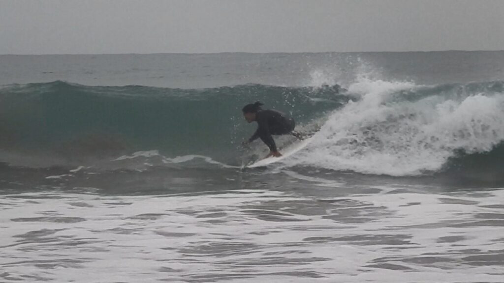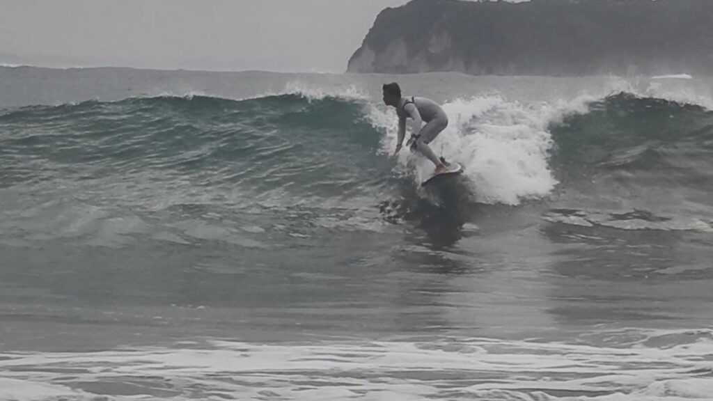 良いライディングをするには波キャッチと足の位置の精度が求められます。