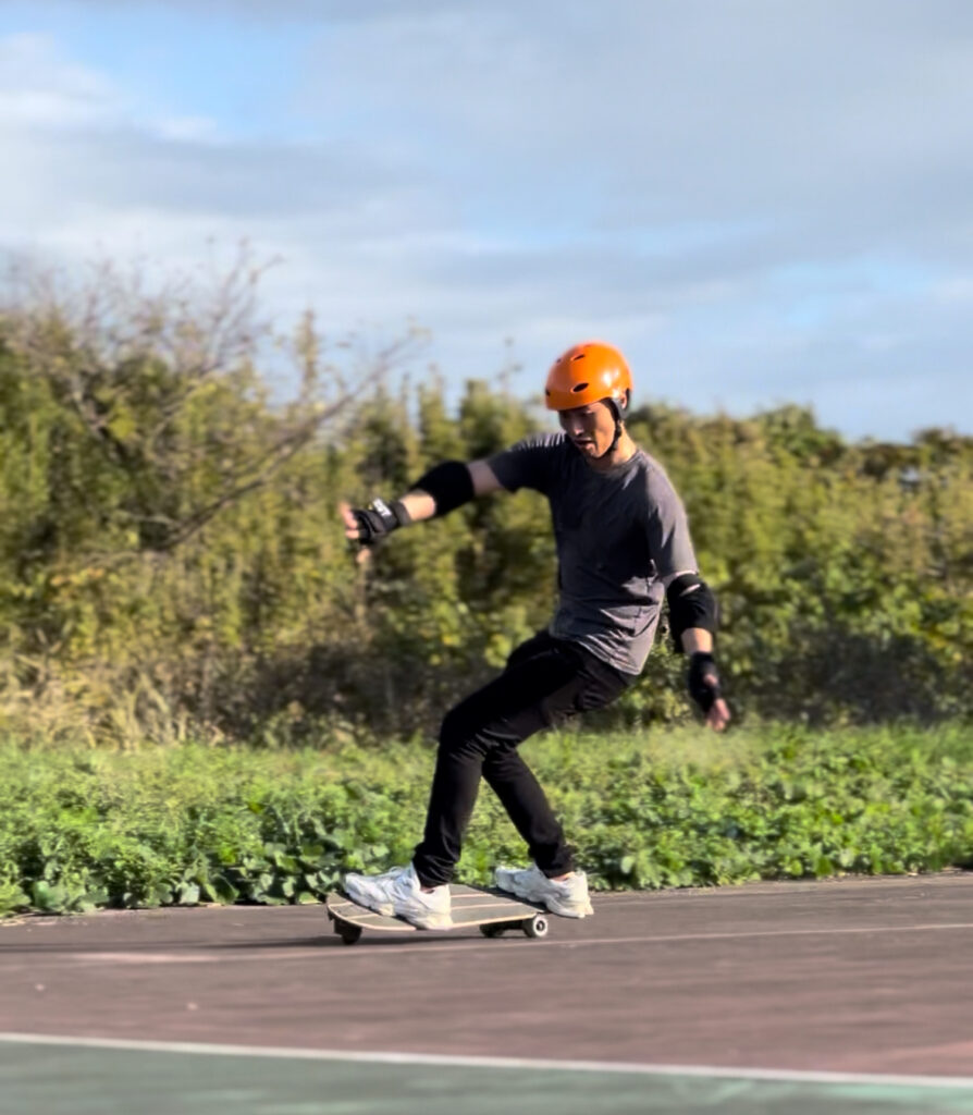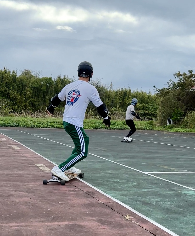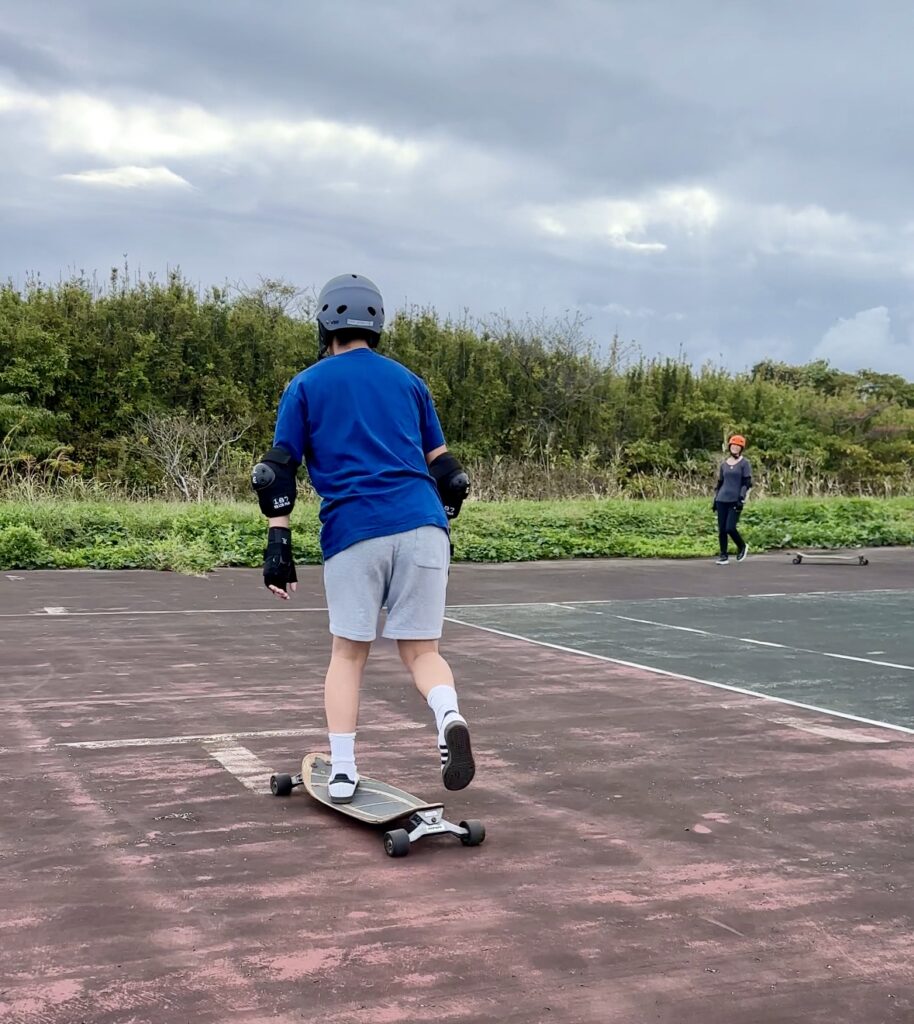 サーフィン用のスケートボードを使用して、 ボード上でのバランスやコントロールを練習します。