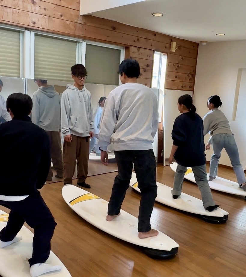 この日の沖クラスは立った後のボードコントロール、バランス練習をしてから海へ!