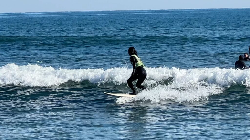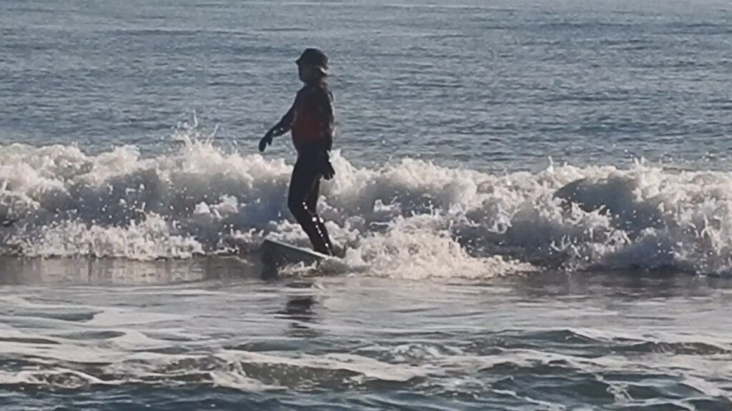 実際にやってみるとすごく難しくて、プロサーファーがやっているようなライディングには程遠く、波に乗ることすらままならず。