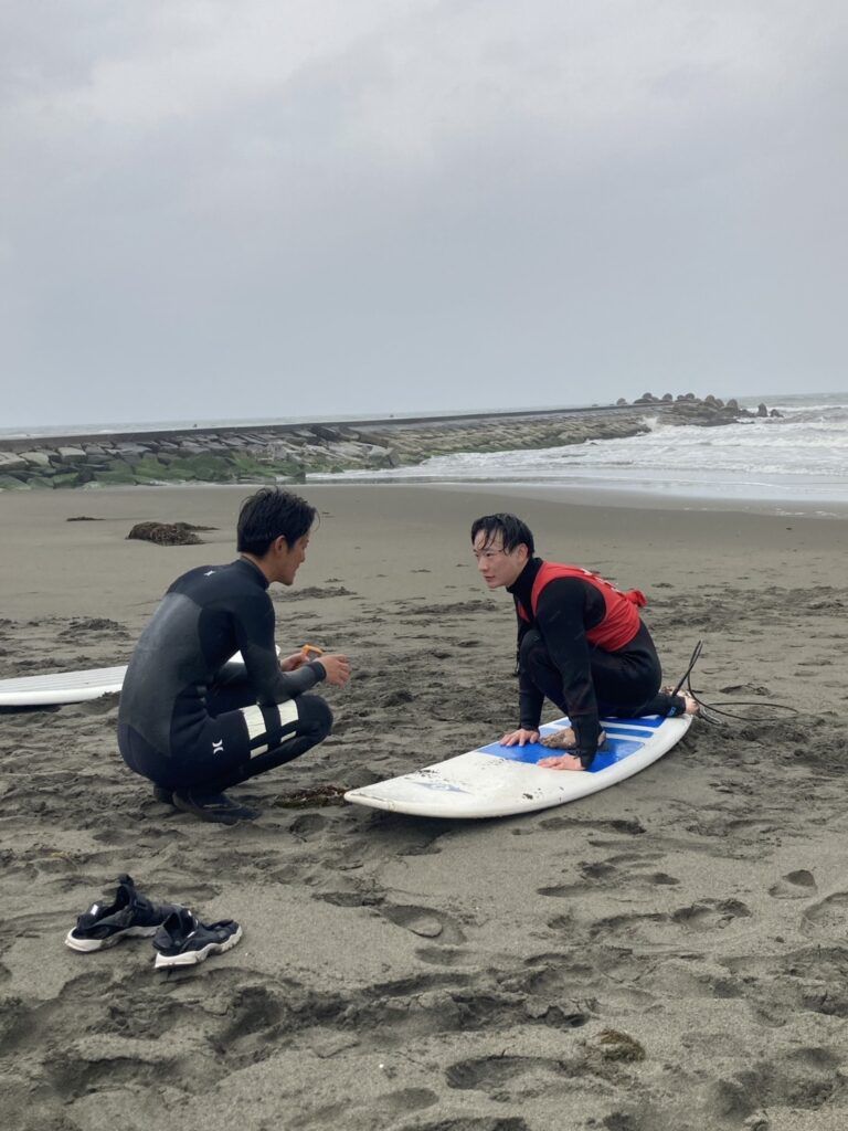 サーフィンデビュークラスはサーフィンに必要な基礎スキルの練習を、