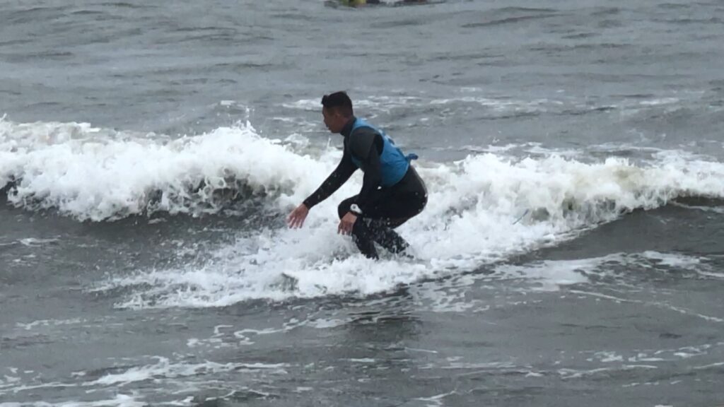 本日のクラスも雨の中、思いっきりサーフィン!