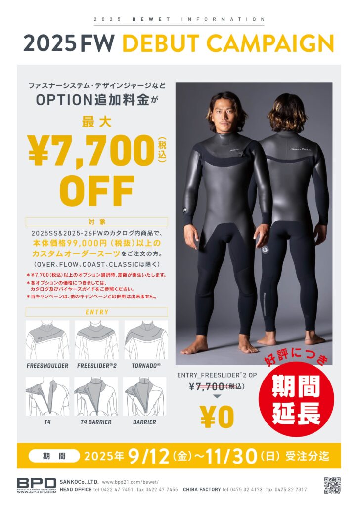 ご好評につき、BEWET 2025FWウェットオーダーフェア延長決定!!