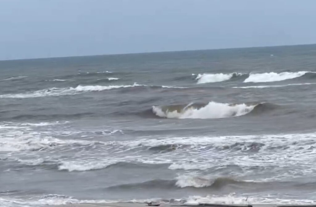 堤防右の方が、北風を交わし面はクリーンですが、サイズ、波数ともに物足りないコンディションとなっています。