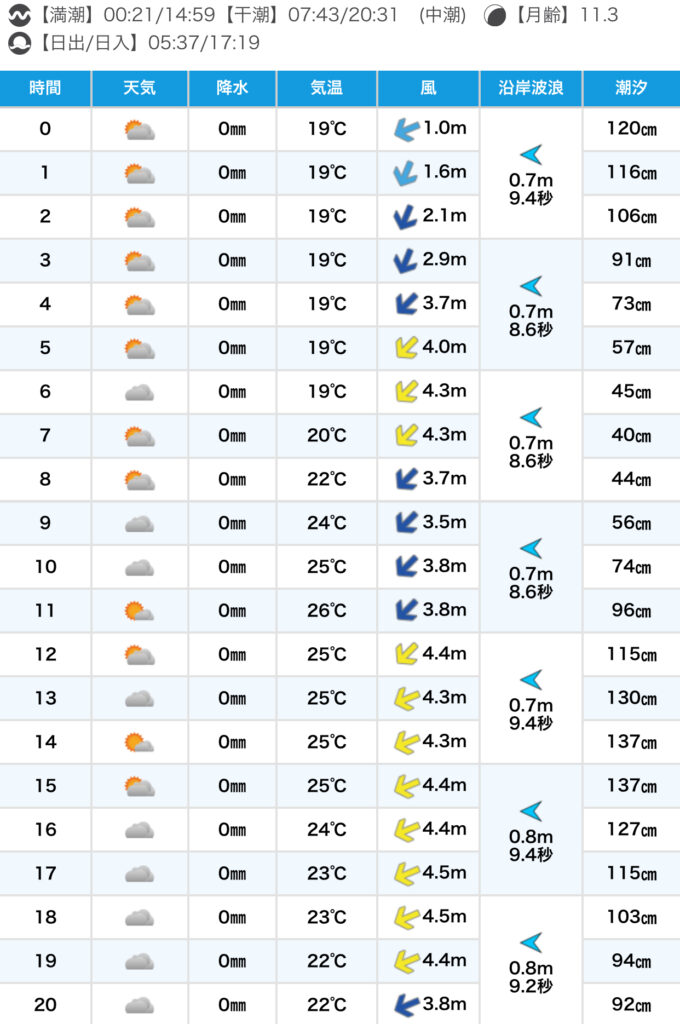 1日を通して北東風が吹くので、海面への影響はありますが遊べるコンディションになりそうです。