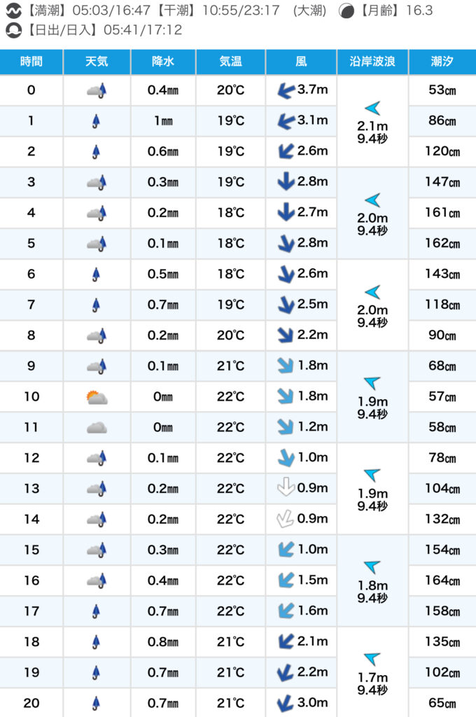 潮の満ち引きと最新の風の様子をチェックしましょう。