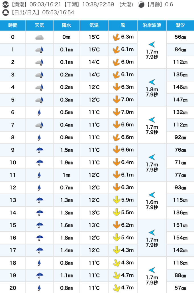 明日は1日を通して北~北東風の予報。 徐々にサイズアップ、胸~肩前後のサイズ予想。