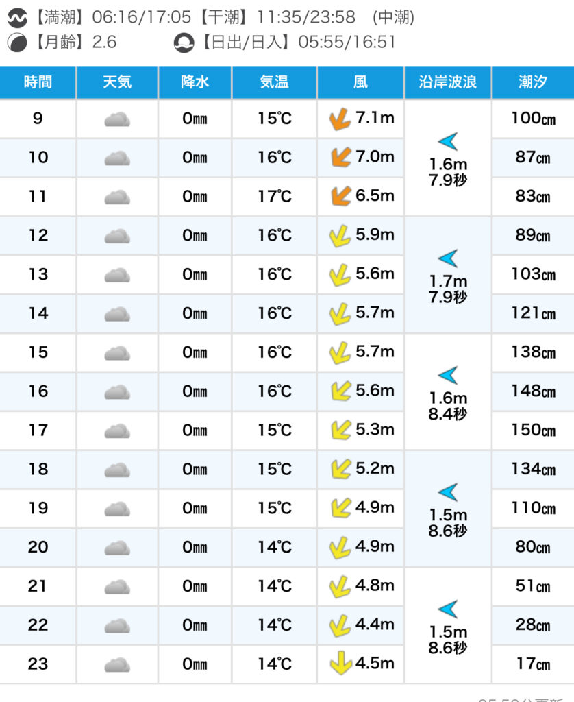 この後も、北東風が強めに吹く予報。