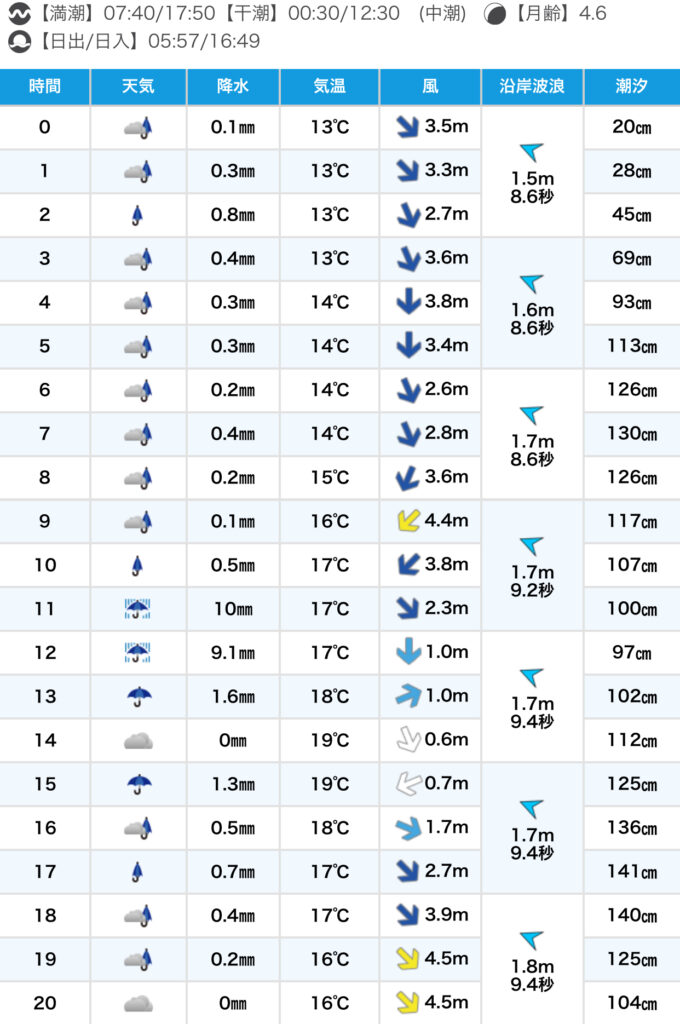 明日は風は弱まりそうだが、ハードコンディションが続きそう。 胸~肩セット頭のサイズ予想。