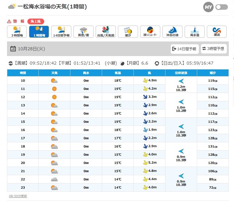 10月28日(火) 九十九里 一松海岸 波情報