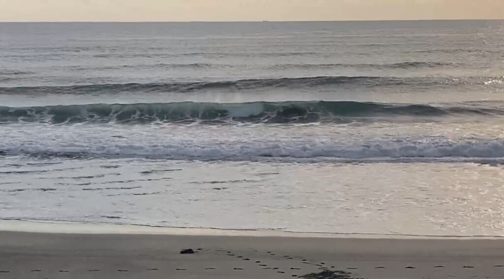 今朝のサイズは腹セット胸前後。 北風がやや吹いていますが、堤防の右側は風をかわしクリーンとなっています。 波数は少なめに、ビギナーの方でも沖へ出れそうなコンディションです。