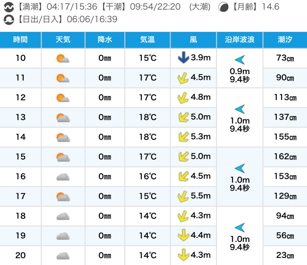 日中にかけてはややサイズアップ傾向ですが概ね変化はなさそうです。 潮の満ちている時間帯は割れにくくなりそうなので、引いている時間帯がねらい目でしょう。