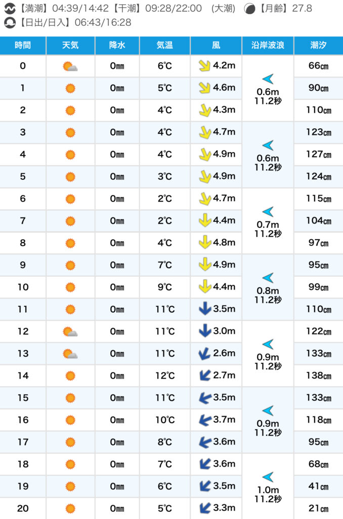 午後~日没にかけては風波にはなりますが、多少サイズアップする可能性もあるのでサイズを求める方は日没前がおすすめです。