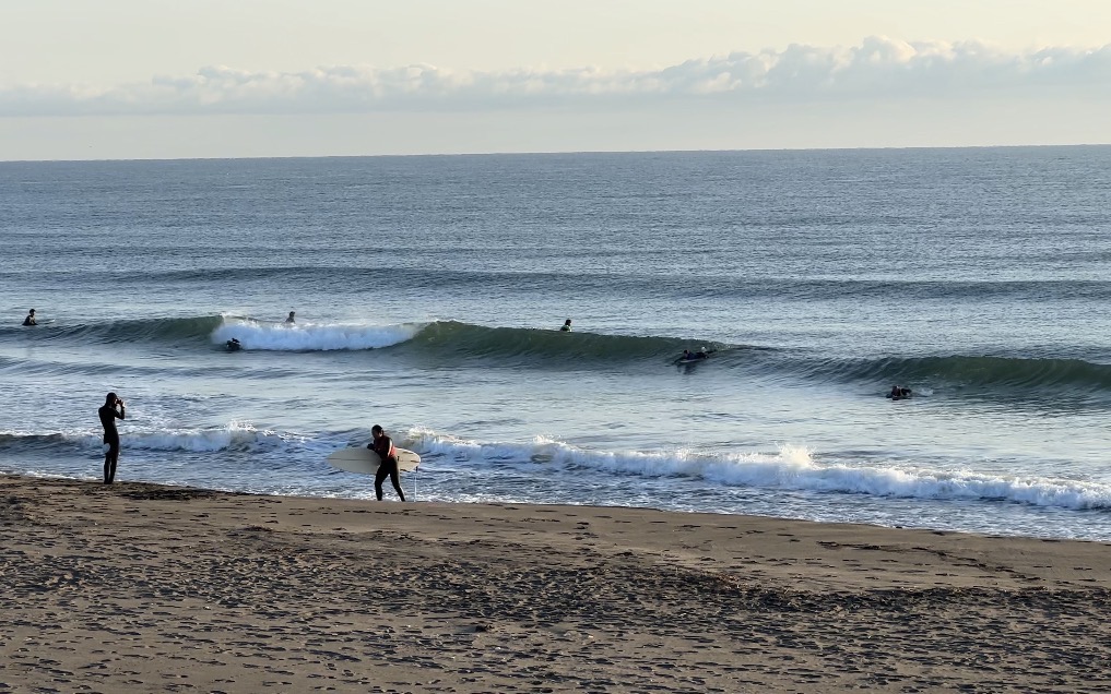 潮が引いてきたらもう少し乗れる波は増えて来そうです。