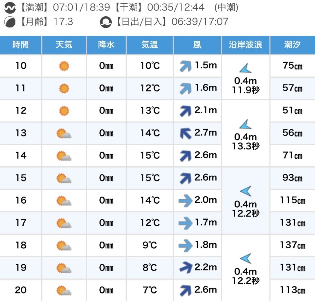 日中にかけては南西~西風が弱く吹く予報で、1日を通して風の影響は少なく遊べそうです。 うねりも概ね変化なく、腰~腹前後でしょう。