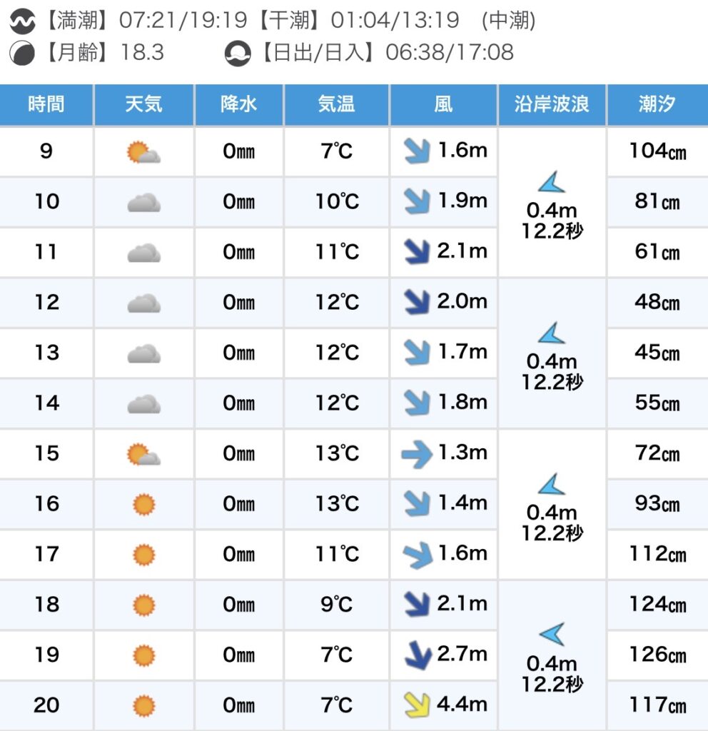 日中にかけても北西風ですが弱く、 風の影響は少なく遊べそうです。 ロータイドがねらい目でしょう。