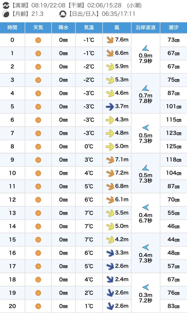 明日は徐々にサイズダウン傾向。腹前後のサイズ予想。