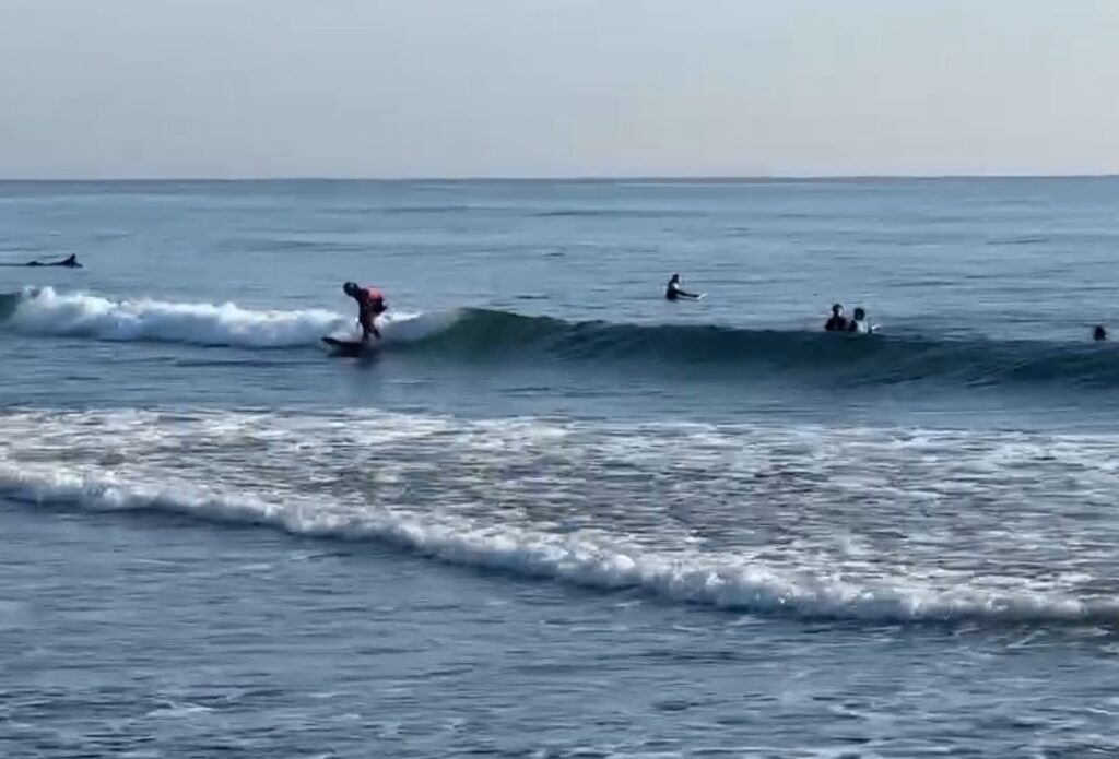 小振りですが切れ目から乗れば何とか走れる波もあります。