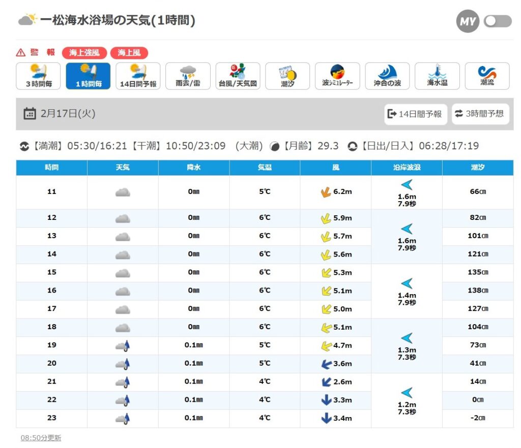 2月17日(火) 九十九里 一松海岸 波情報