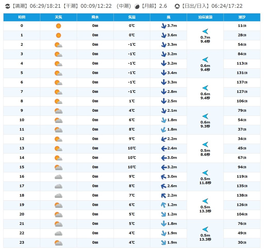 風は北に始まりお昼ごろから北東にシフトする予報。