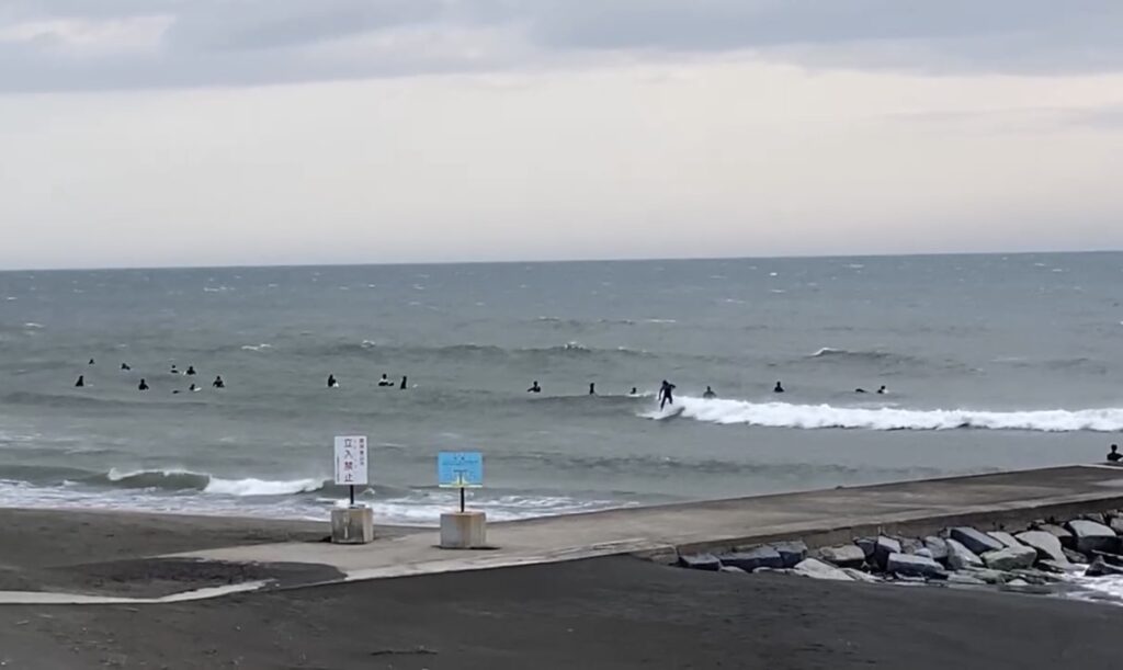 日中にかけても南西寄りの風が強く吹き続けるので、 ウネリは抑えられ、がたつくコンディションが続きそうです。 大きなサイズ変化はなさそうなので、幅広いレベルに遊べそうですが、 ボードの跳ね上がり、跳ね返りには十分に気を付けましょう。