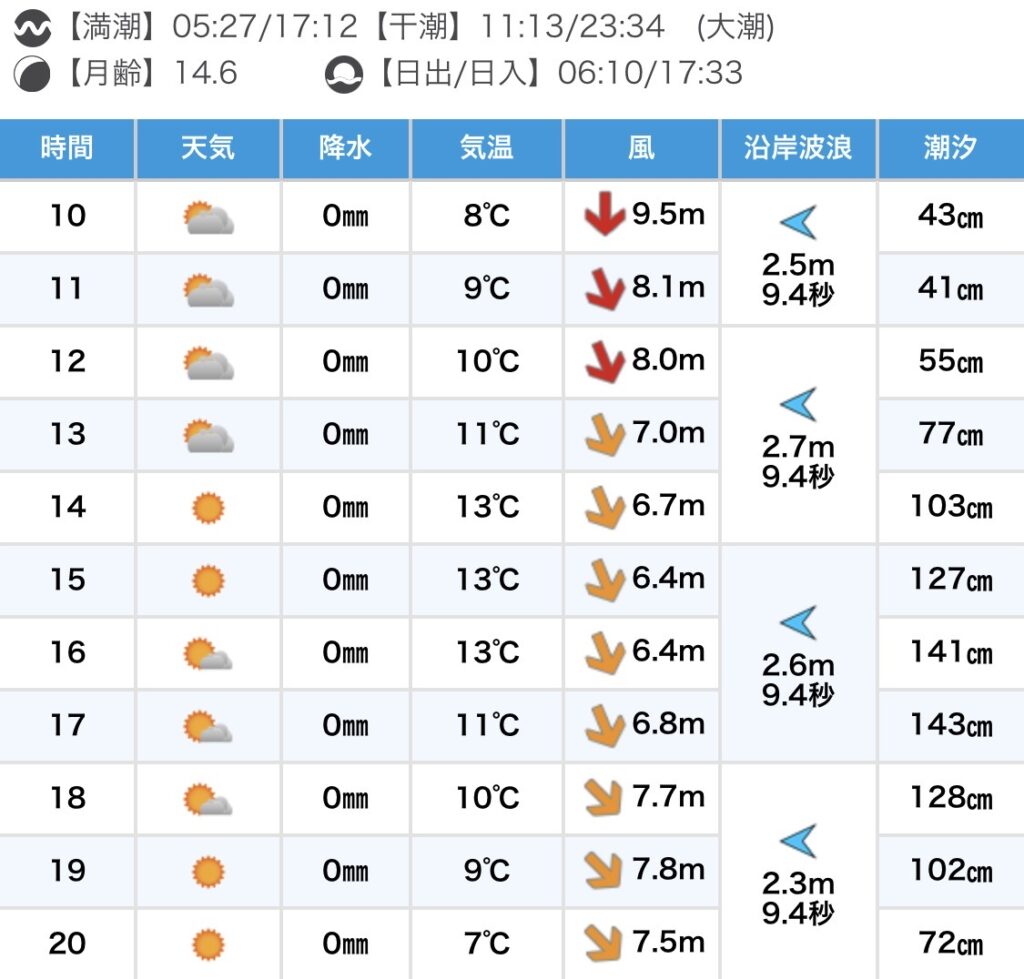 昨日から吹き続ける北寄りの風の影響で、猛烈なカレントが流れています。 手前のスープでも流れがあり、厳しいでしょう。 入水を考えている方は、南向きのポイントをチェックしましょう。