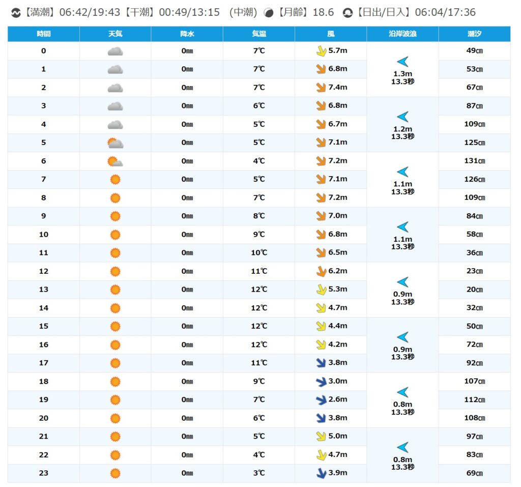 風はやや強めの北西が吹く予報。