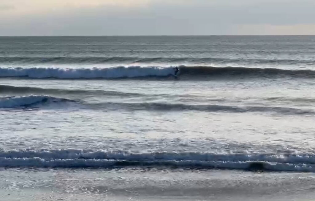 オフショアが強く、板が降りていき辛いなか、中上級者であれば遊べる波はあります。