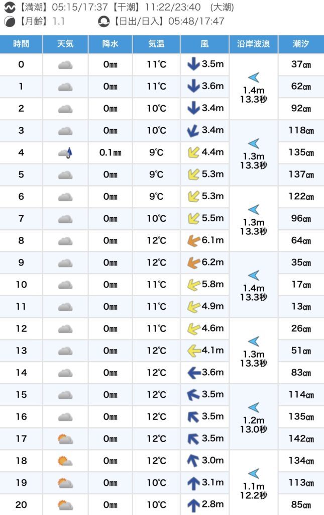 風は北東風が強めに、海面はガタつきまとまりのないコンディションになりそう。