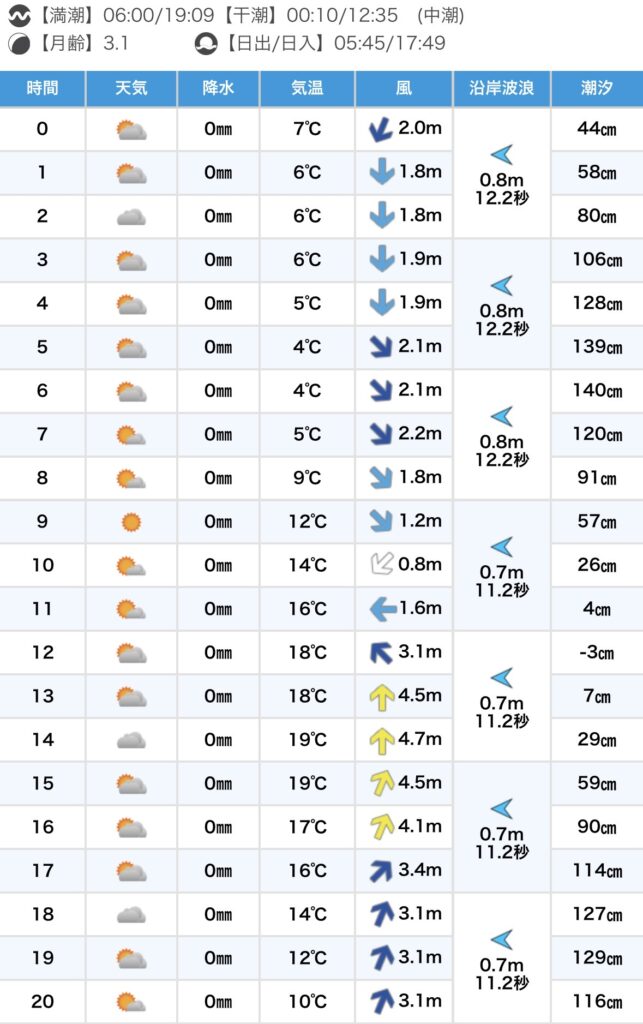 風は北西スタートから東風、午後にかけては南風がやや強めに。