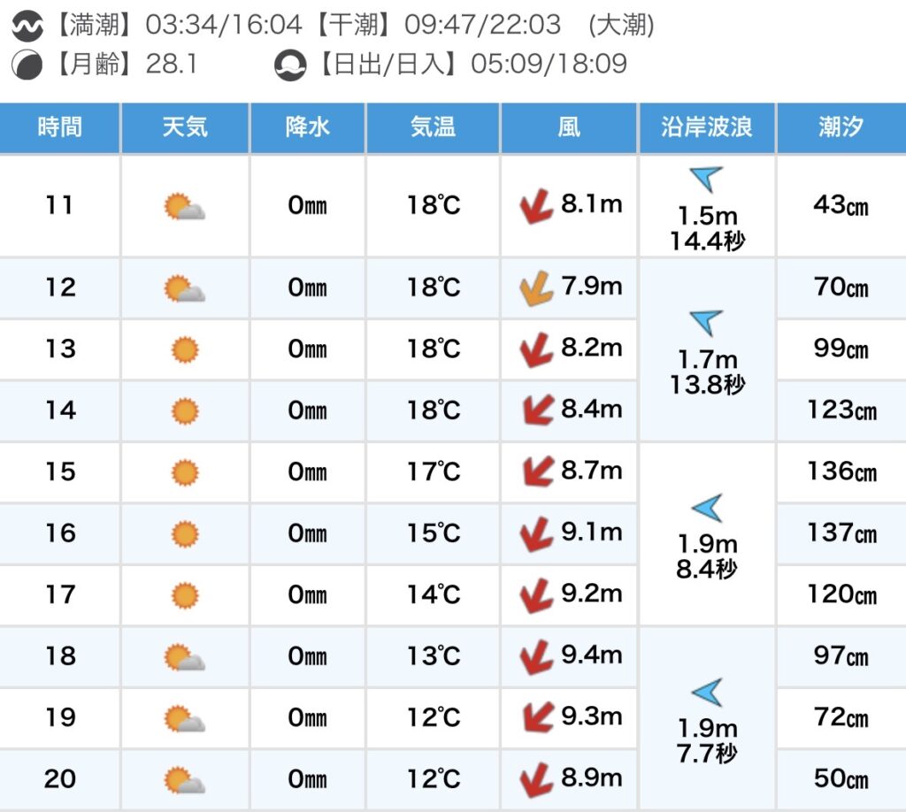 日中にかけてはさらに北東風が強くなり、うねりの反応も上がりサイズアップ。 まとまりのないハードなコンディションになりそうです。