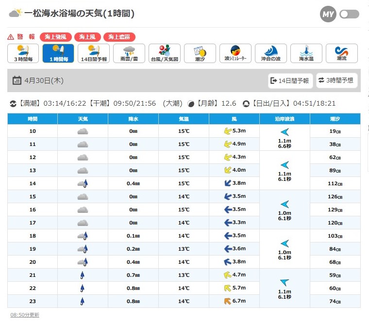 一日を通して北東風の予報。